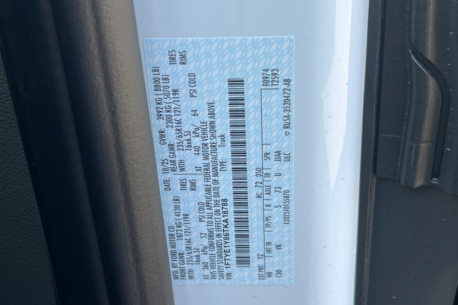 1FTYE1Y86TKA18788