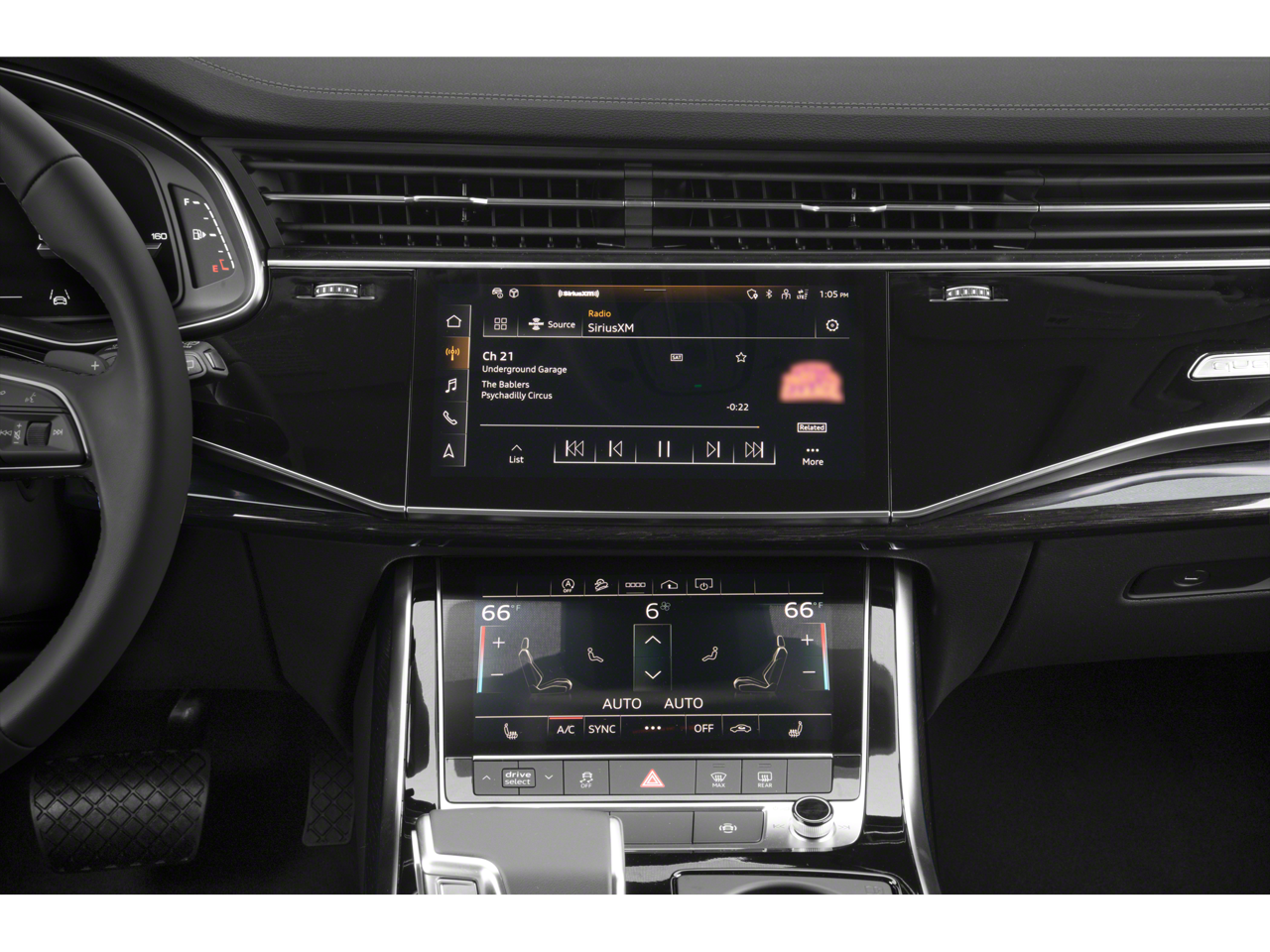- Radio: Audi Sound System -inc: Audi connect CARE (limited time subscription), Audi connect PLUS (6 month trial subscription, acceptance of Terms required), Audi smartphone interface (wireless Apple CarPlay and Android Auto), Audi MMI navigation plus w/MMI touch response (10.1" upper screen), Bluetooth w/audio streaming and SiriusXM w/360L (3 month trial subscription, acceptance of Terms required)
