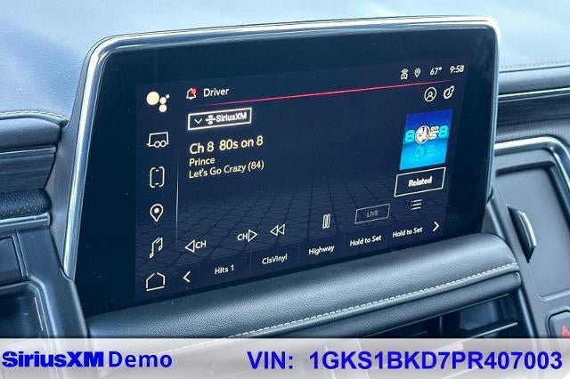 CARFAX One-Owner. Clean CARFAX. Summit White 2023 GMC Yukon SLT RWD 10-Speed Automatic with Overdrive EcoTec3 5.3L V8 CARFAX ONE OWNER, NON-SMOKER, 3RD ROW SEAT, Navigation System, Premium Sound Package, Leather Seats, Backup Camera, Bluetooth®, Alloy Wheels, Aluminum Wheels, Climate Package, Heat Package, Light Package, Power Mirror Package, Power Package, Premium Audio Package, Remote Start, Sound Package, Tow Package, Trailer Package, Yukon SLT, 4D Sport Utility, EcoTec3 5.3L V8, 10-Speed Automatic with Overdrive, RWD, Summit White, Jet Black w/Perforated Leather Seating Surfaces, 2 Presets For Power Driver Seat, 3.23 Rear Axle Ratio, 3rd row seats: split-bench, 4-Wheel Disc Brakes, 9 Speakers, ABS brakes, Air Conditioning, Alloy wheels, AM/FM radio: SiriusXM with 360L, AM/FM Stereo, Apple CarPlay/Android Auto, Auto High-beam Headlights, Auto-dimming Rear-View mirror, Automatic Emergency Braking, Automatic temperature control, Bodyside moldings, Bose 9-Speaker Stereo Audio System Feature, Brake assist, Bright Chrome Bodyside Moldings, Bright Front & Rear Door Sill Plates, Bumpers: body-color, Chrome Door Handles w/Body-Color Strip, Compass, Delay-off headlights, Deleted 3 Years of OnStar & Connected Services Plan, Driver door bin, Driver vanity mirror, Dual front impact airbags, Dual front side impact airbags, Electronic Stability Control, Emergency communication system: OnStar and GMC connected services capable, Following Distance Indicator, Forward Collision Alert, Four wheel independent suspension, Front & Rear Park Assist, Front Bucket Seats, Front Center Armrest, Front dual zone A/C, Front fog lights, Front Pedestrian Braking, Front reading lights, Fully automatic headlights, Garage door transmitter, Hands-Free Power Programmable Rear Liftgate, Heated & Ventilated Driver & Front Passenger Seats, Heated door mirrors, Heated Driver & Front Passenger Seats, Heated front seats, Illuminated entry, Inside Rear-View Auto-Dimming Mirror, IntelliBeam Automatic High Beam On/Off, Lane Change Alert w/Side Blind Zone Alert, Lane Keep Assist w/Lane Departure Warning, License Plate Front Mounting Package, Low tire pressure warning, Memory seat, Navigation System, Not Equipped w/4-Way Driver & Fr Pass Pwr Lumbar, Occupant sensing airbag, Outside temperature display, Overhead airbag, Overhead console, Panic alarm, Passenger door bin, Passenger vanity mirror, Perforated Leather-Appointed Seating, Power door mirrors, Power driver seat, Power Liftgate, Power passenger seat, Power steering, Power windows, Preferred Equipment Group 4SA, Premium Smooth Ride Suspension, Rain sensing wipers, Rear air conditioning, Rear Cross Traffic Alert, Rear reading lights, Rear seat center armrest, Rear window defroster, Rear window wiper, Remote keyless entry, Roof rack: rails only, Safety Alert Seat, Security system, SiriusXM w/360L, Speed control, Speed-sensing steering, Split folding rear seat, Spoiler, Steering wheel mounted audio controls, Tachometer, Telescoping steering wheel, Tilt steering wheel, Traction control, Trip computer, Universal Home Remote, Variably intermittent wipers, Ventilated front seats, Voltmeter, Wheels: 20" x 9" 6-Spoke Polished Aluminum, Wireless Charging.