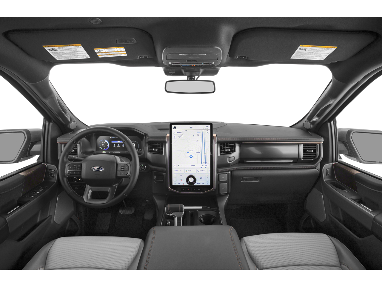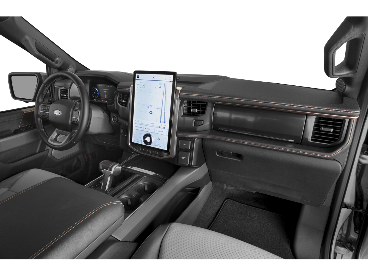 This 2024 Agate Black Metallic Ford F-150 Lightning Lariat AWD is well equipped and includes these features and benefits: Equipment Group 511A Standard, F-150 Lightning Lariat, AWD, 4-Wheel Disc Brakes, 8 Speakers, ABS brakes, ActiveX Trimmed Heated & Ventilated Seats, Adjustable pedals, Air Conditioning, Alloy wheels, Auto High-beam Headlights, Auto tilt-away steering wheel, Auto-dimming door mirrors, Auto-dimming Rear-View mirror, Automatic temperature control, Brake assist, Bumpers: body-color, Compass, Delay-off headlights, Driver door bin, Driver vanity mirror, Dual front impact airbags, Dual front side impact airbags, Electronic Stability Control, Emergency communication system: SYNC 4 911 Assist, Four wheel independent suspension, Front anti-roll bar, Front Bucket Seats, Front Center Armrest, Front dual zone A/C, Front License Plate Bracket, Front reading lights, Fully automatic headlights, Heated door mirrors, Heated front seats, Heated rear seats, Heated steering wheel, Illuminated entry, Illuminated running boards, Knee airbag, Low tire pressure warning, Memory seat, Mobile Power Cord (120/240V), Navigation system: Connected Navigation, Occupant sensing airbag, Outside temperature display, Overhead airbag, Overhead console, Panic alarm, Passenger door bin, Passenger vanity mirror, Pedal memory, Power door mirrors, Power driver seat, Power moonroof, Power passenger seat, Power steering, Power windows, Radio data system, Radio: B&O Sound System by Bang & Olufsen, Rain sensing wipers, Rear anti-roll bar, Rear reading lights, Rear seat center armrest, Rear step bumper, Rear window defroster, Remote keyless entry, Security system, Speed control, Speed-sensing steering, Split folding rear seat, Steering wheel memory, Steering wheel mounted audio controls, SYNC 4A w/Enhanced Voice Recognition, Telescoping steering wheel, Tilt steering wheel, Traction control, Trip computer, Turn signal indicator mirrors, Variably intermittent wipers, Ventilated front seats, and Wheels: 20 Alloy Dark Carbonized Gray. F-150 Lightning Lariat, AWD, Equipment Group 511A Standard.